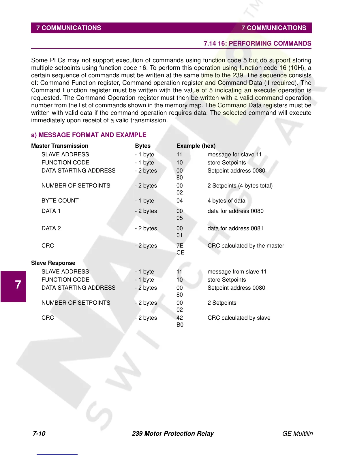 multiple setpoints using function code 16. To perform this operation using function code 16 (10H), a