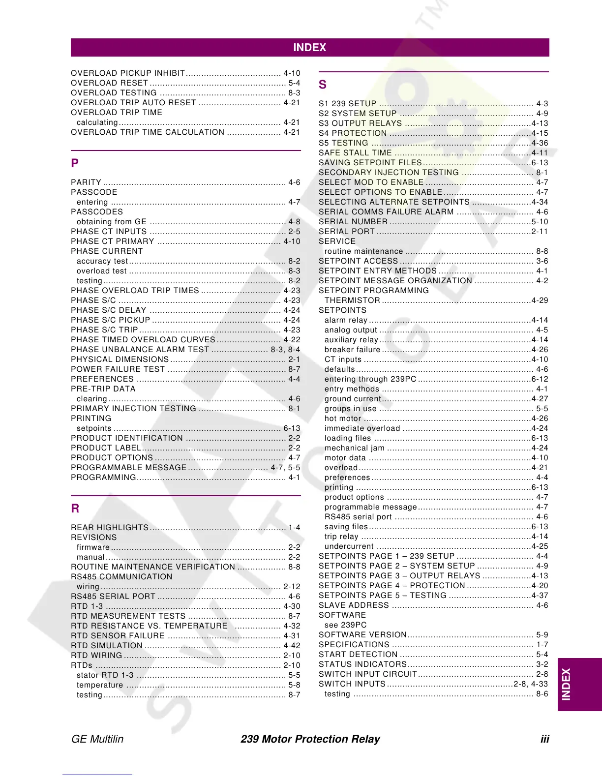 GE Multilin 239 Motor Protection Relay iii