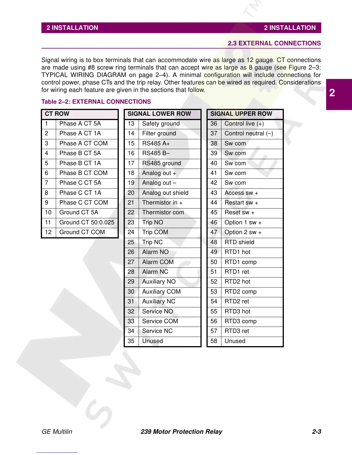 2 Phase A CT 1A 14 Filter ground 37 Control neutral (–)