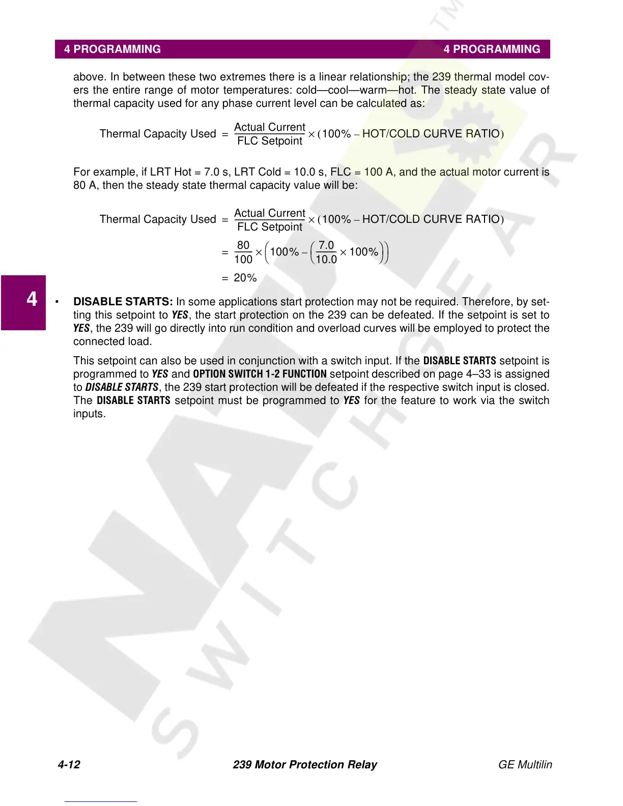 • DISABLE STARTS: In some applications start protection may not be required. Therefore, by set-