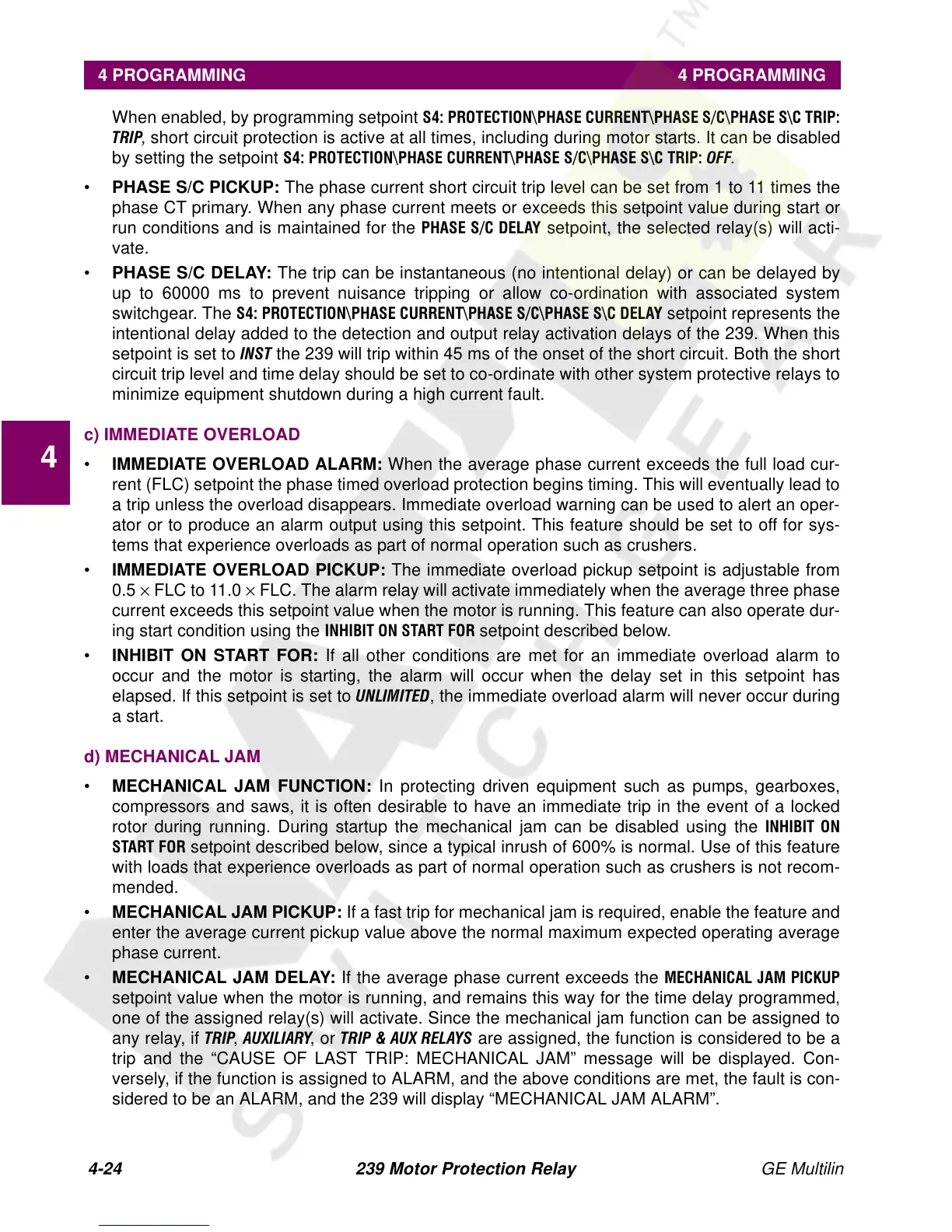 4-24 239 Motor Protection Relay GE Multilin