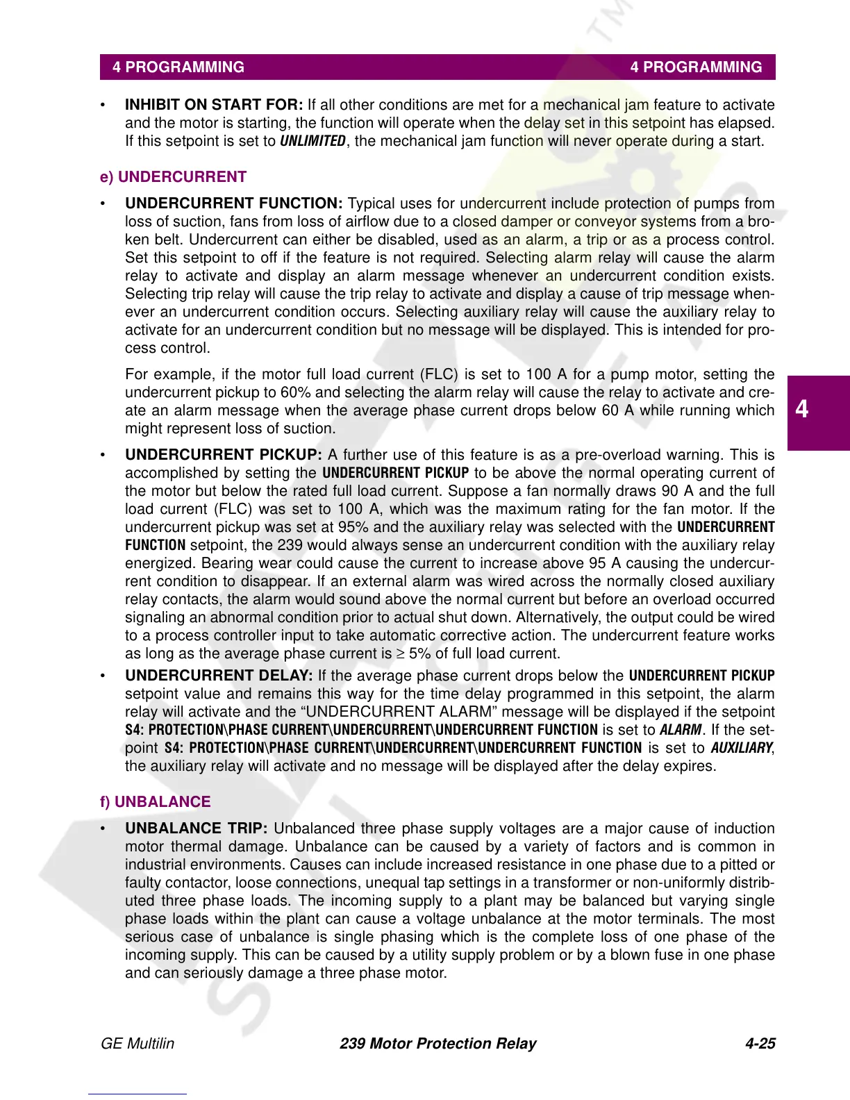 setpoint, the 239 would always sense an undercurrent condition with the auxiliary relay