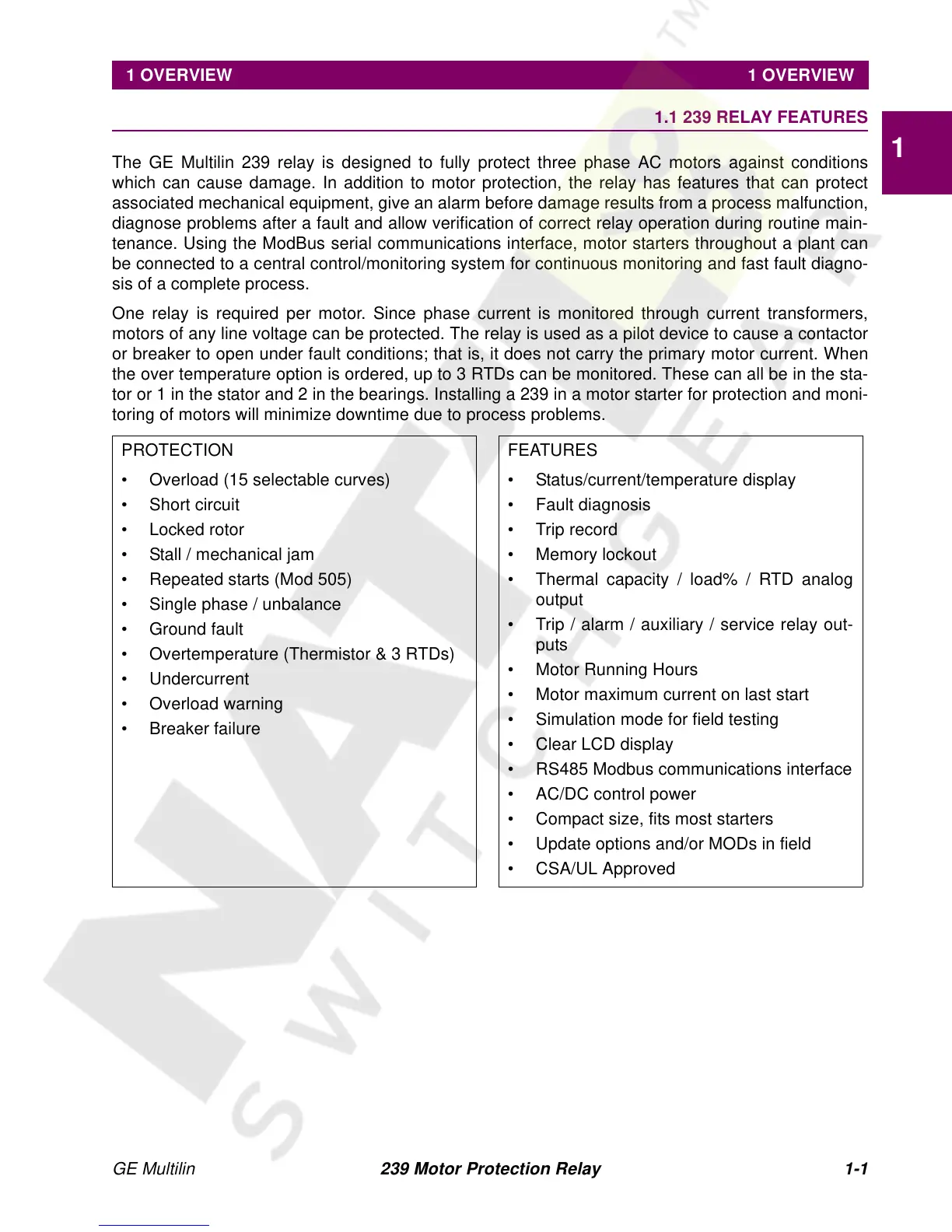 239 INSTRUCTION MANUAL 1 OVERVIEW 1.1 239 RELAY FEATURES