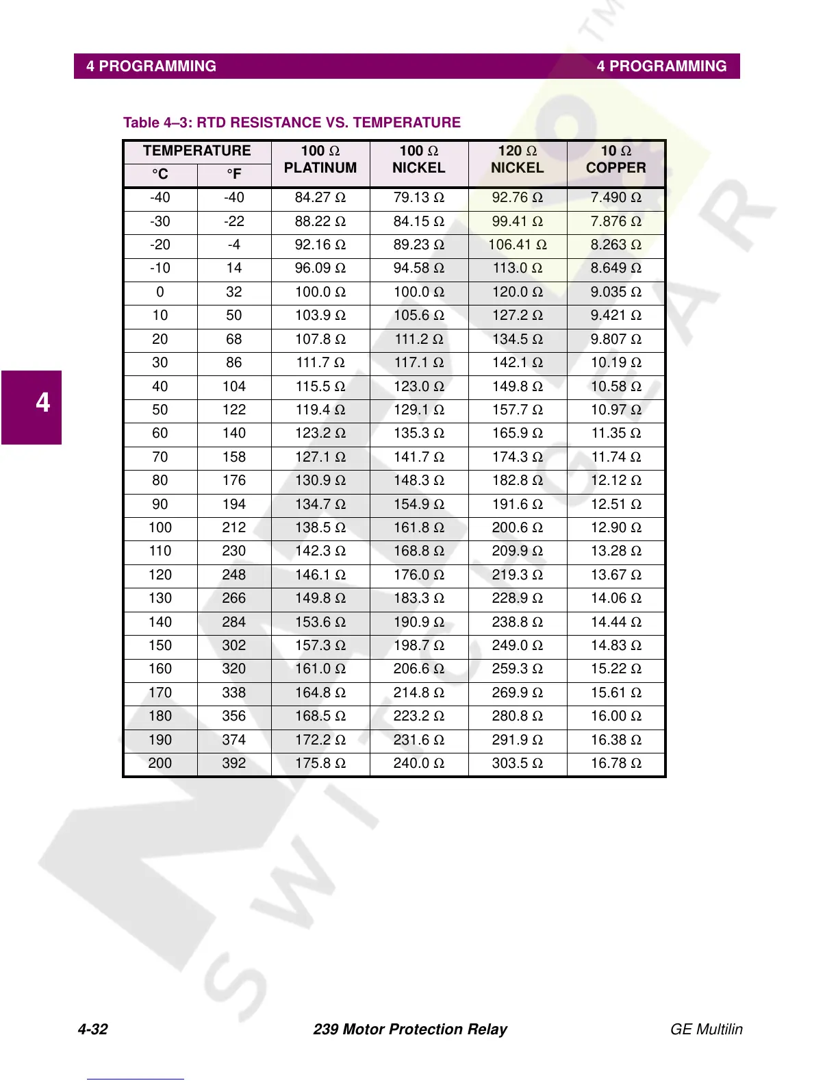 Table 4–3: RTD RESISTANCE VS. TEMPERATURE