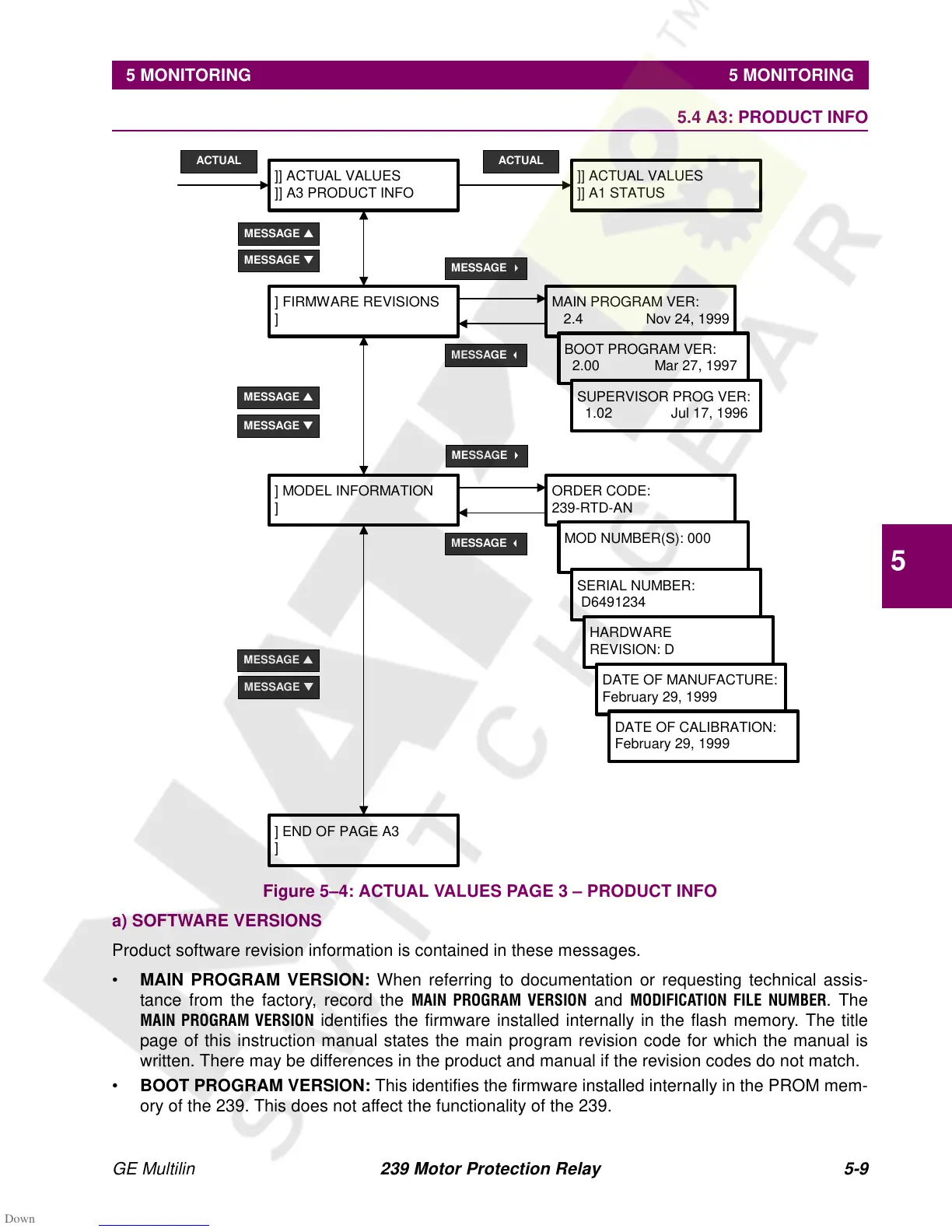 Figure 5–4: ACTUAL VALUES PAGE 3 – PRODUCT INFO