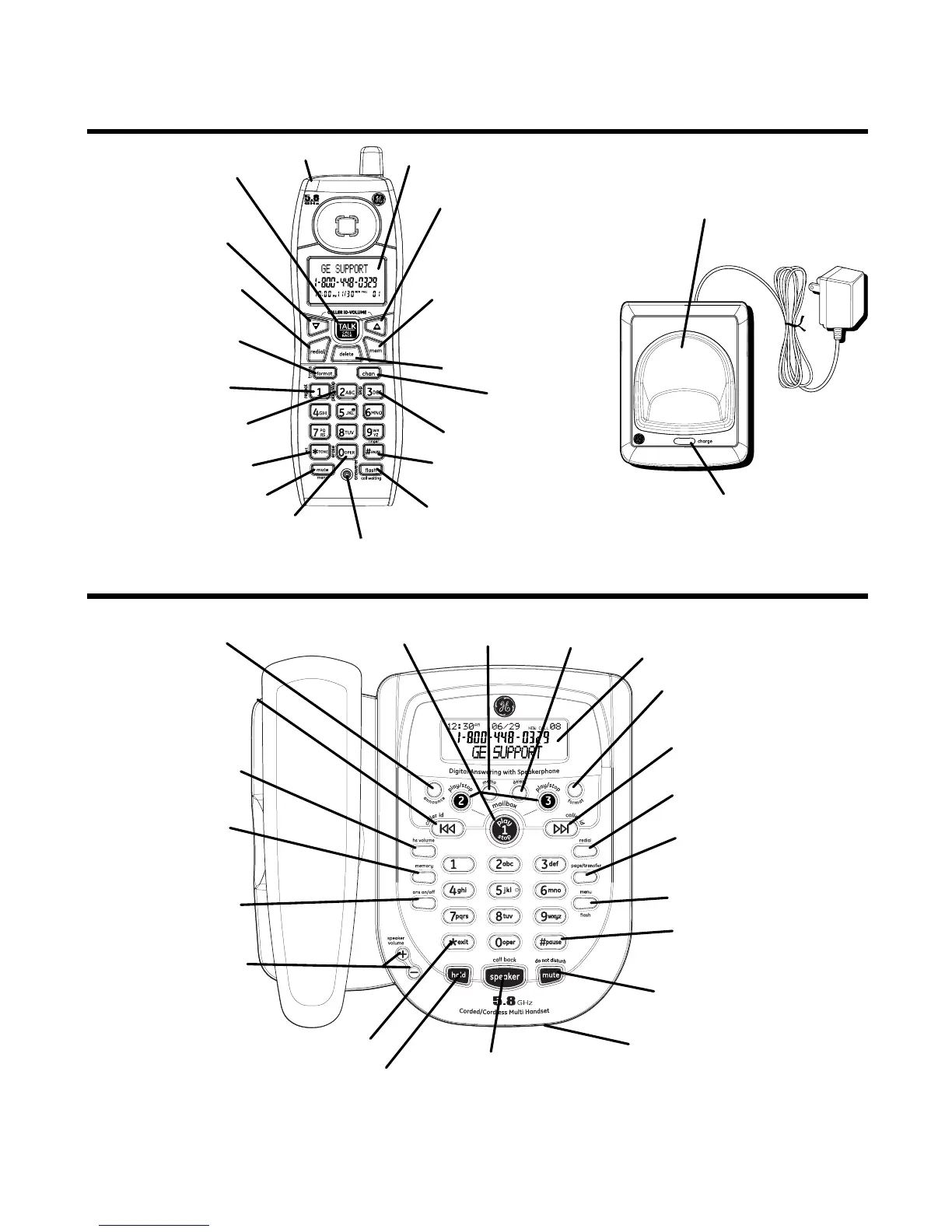 GE 25983 - Handset Andchargecradlelayout; Ase Ayout; Base Layout; Handset and Charge Cradle Layout