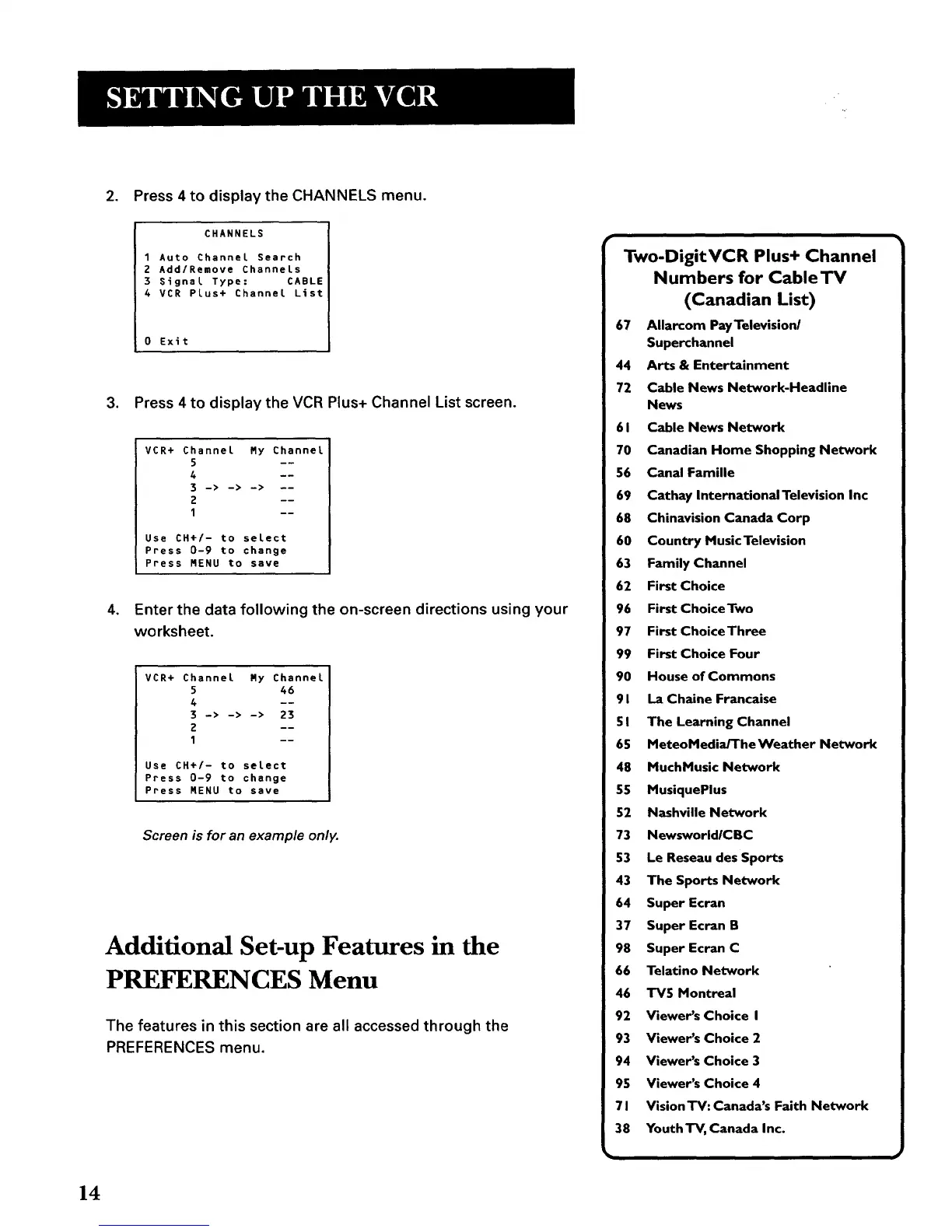 4 VCR PLus+ Channel List