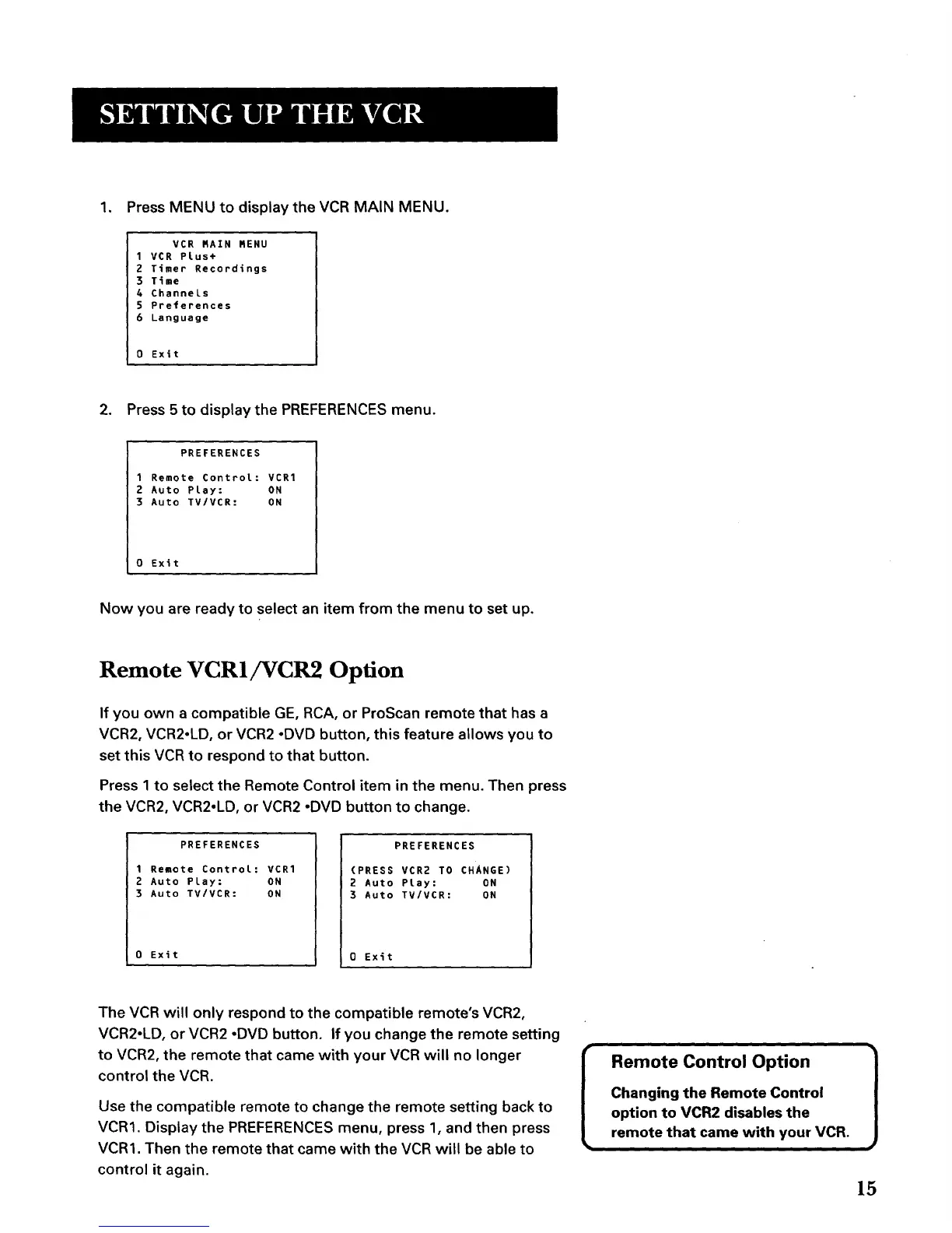 to VCR2, the remote that came with your VCR will no longer