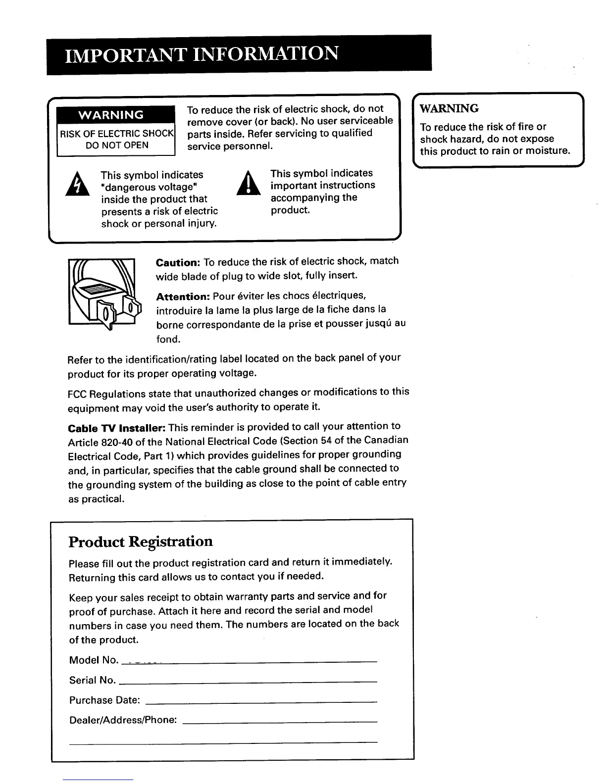 Please fill out the product registration card and return it immediately.