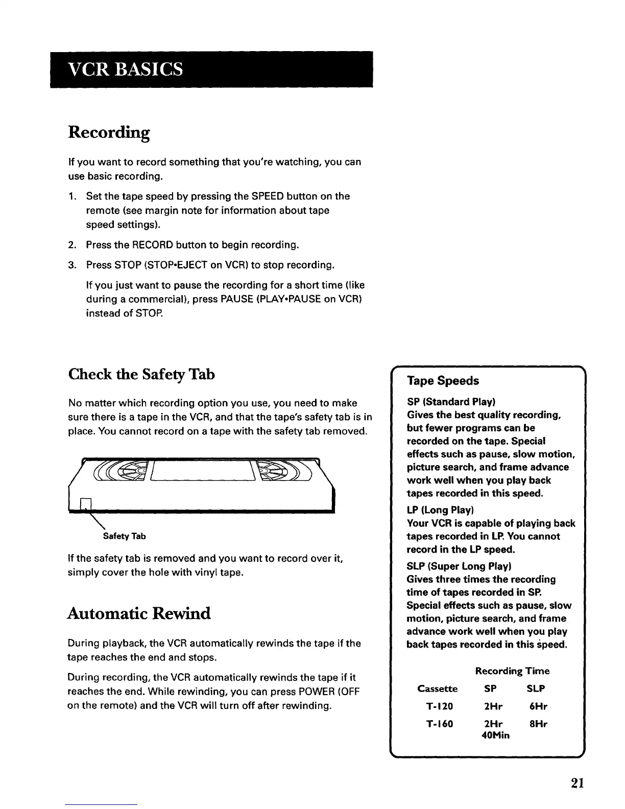 place. You cannot record on a tape with the safety tab removed.