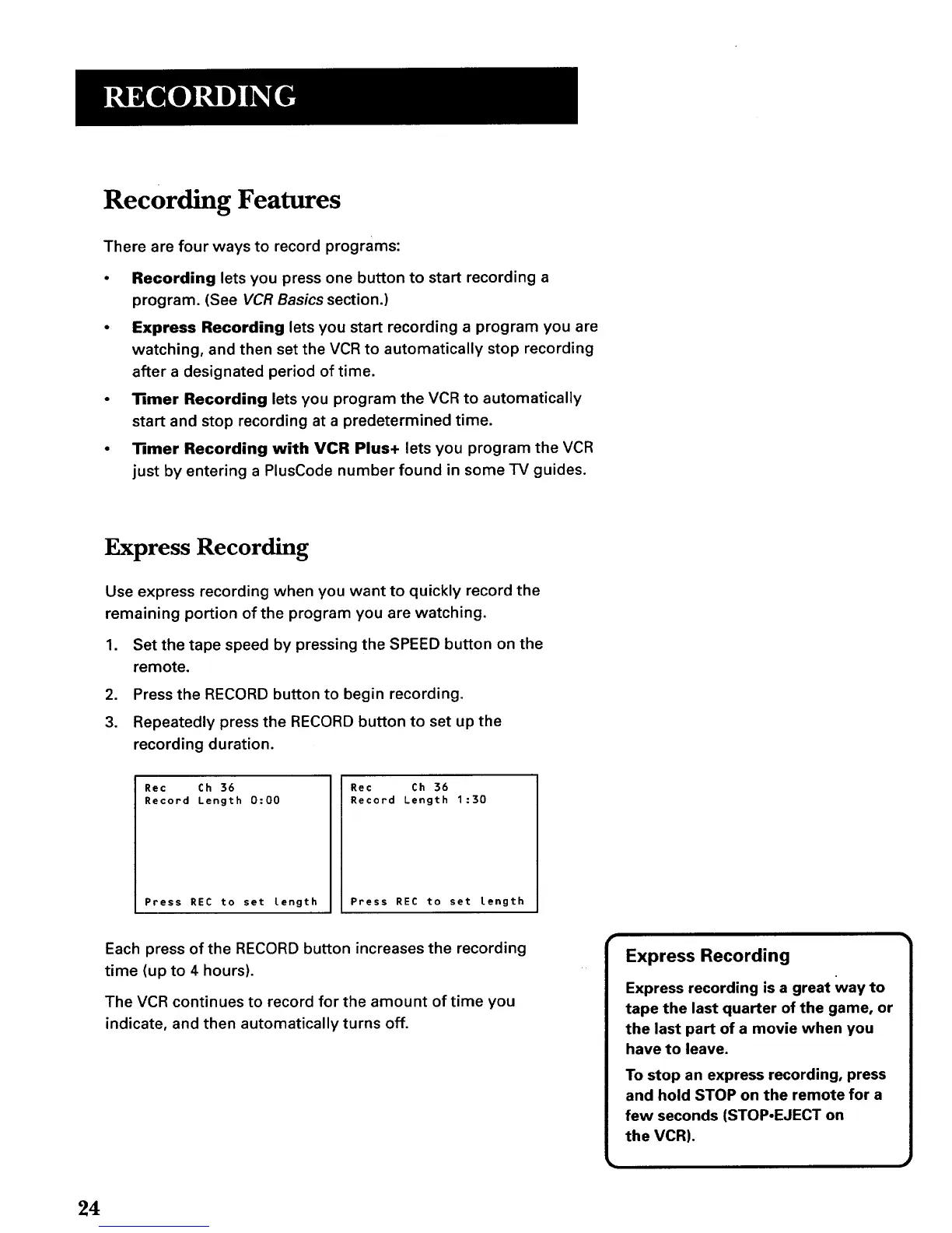 • "i3mer Recording with VCR Plus+ lets you program the VCR