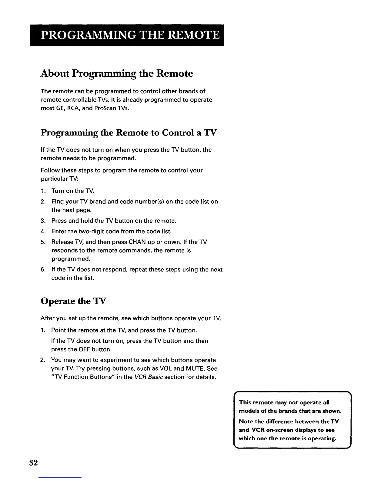 most GE, RCA, and ProScan TVs.