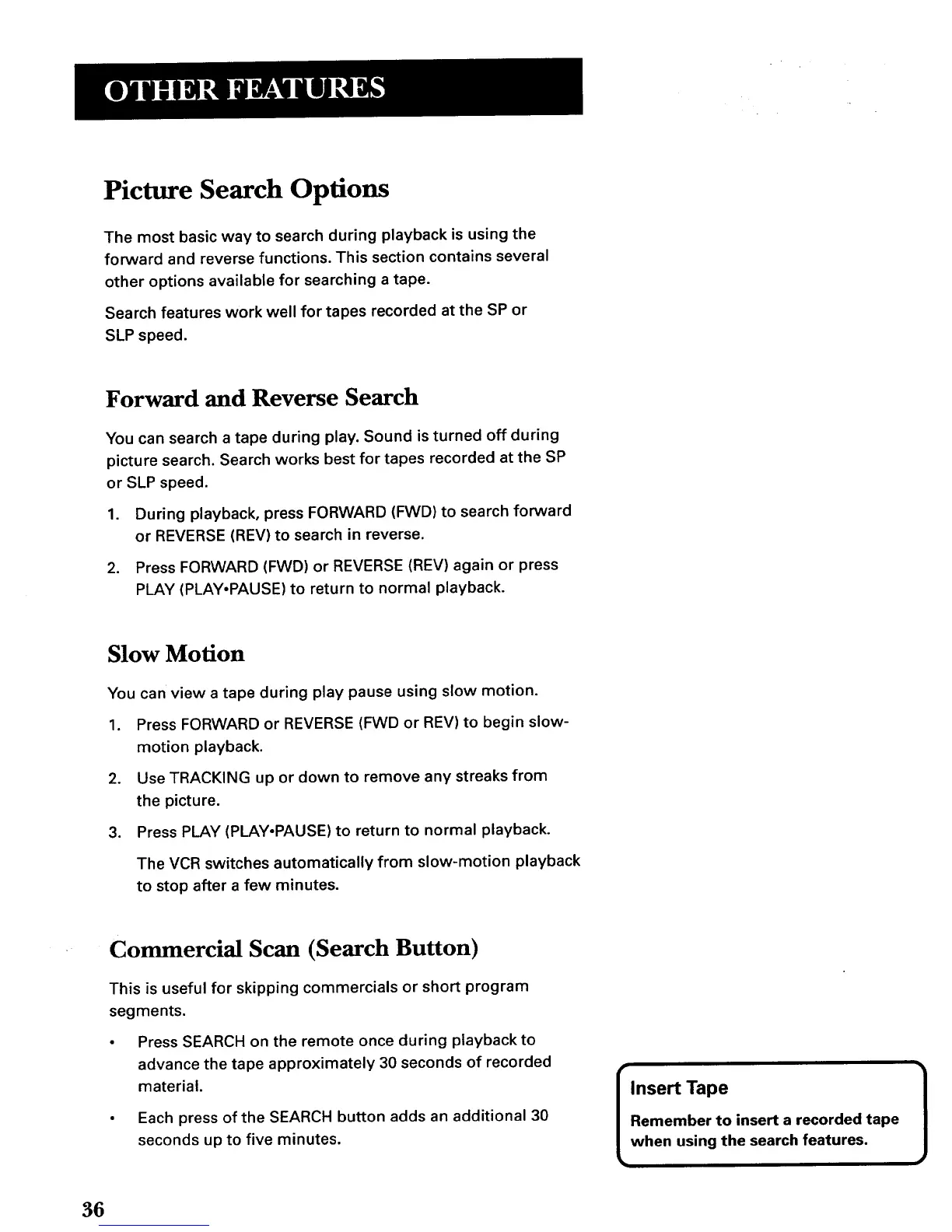 picture search. Search works best for tapes recorded at the SP
