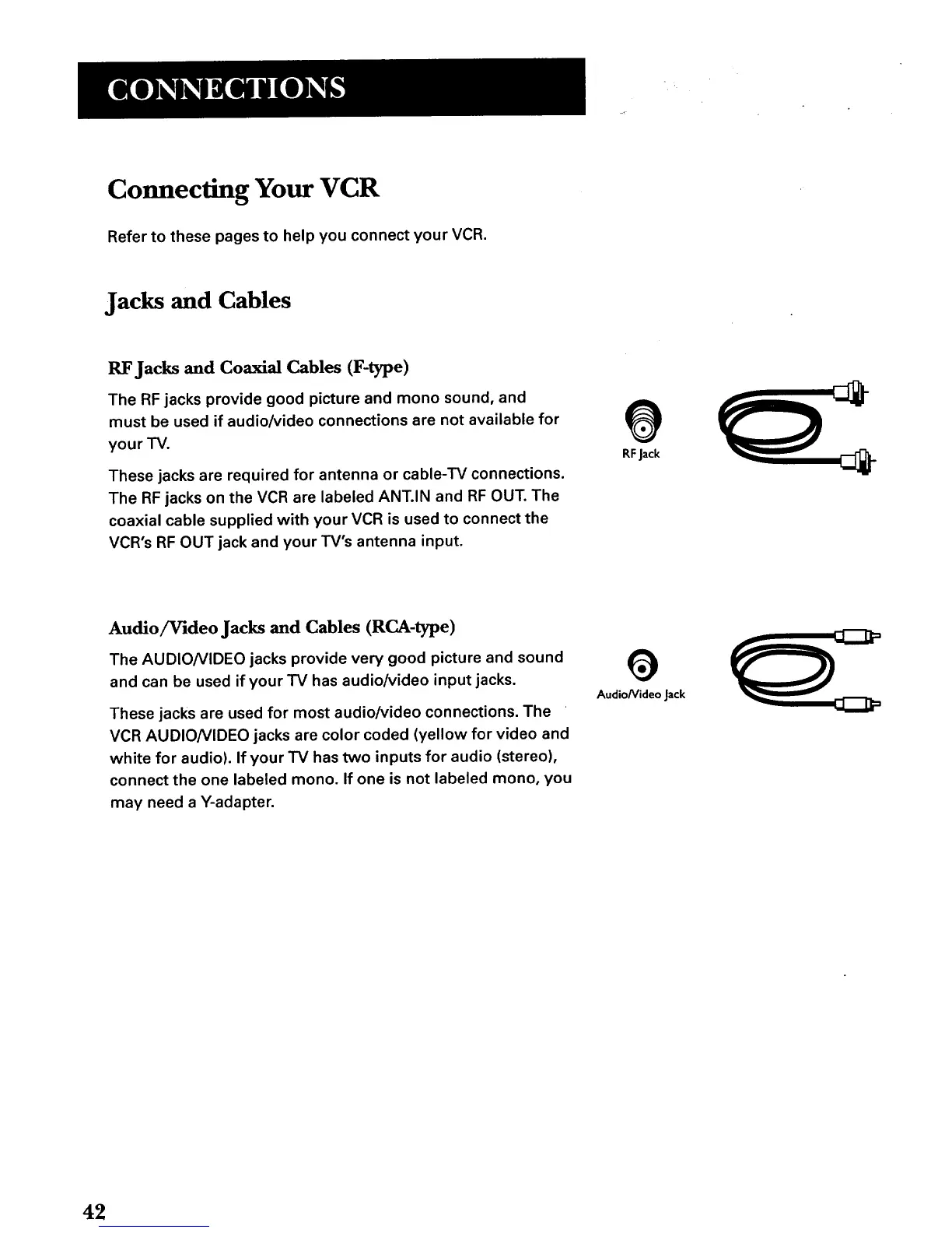 VCR AUDIO/VIDEO jacks are color coded (yellow for video and