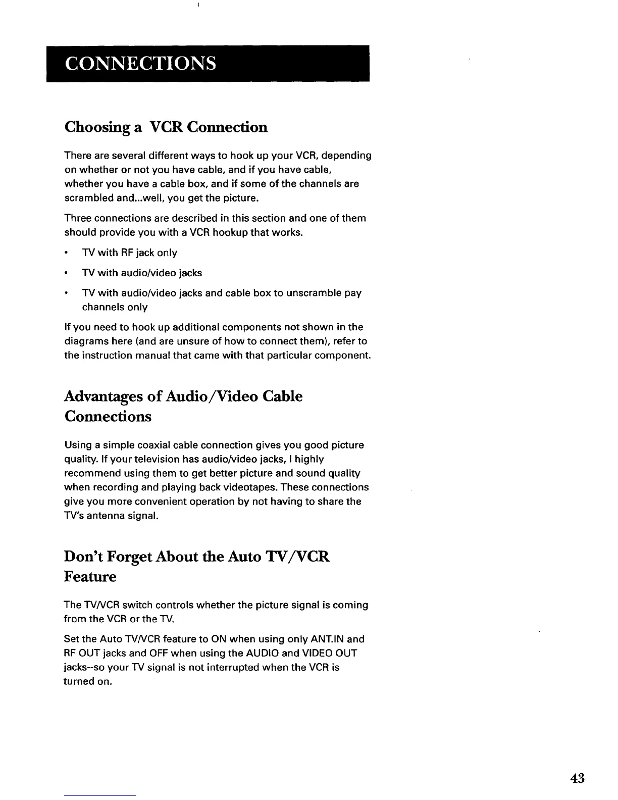 Set the Auto TV/VCR feature to ON when using only ANT.IN and