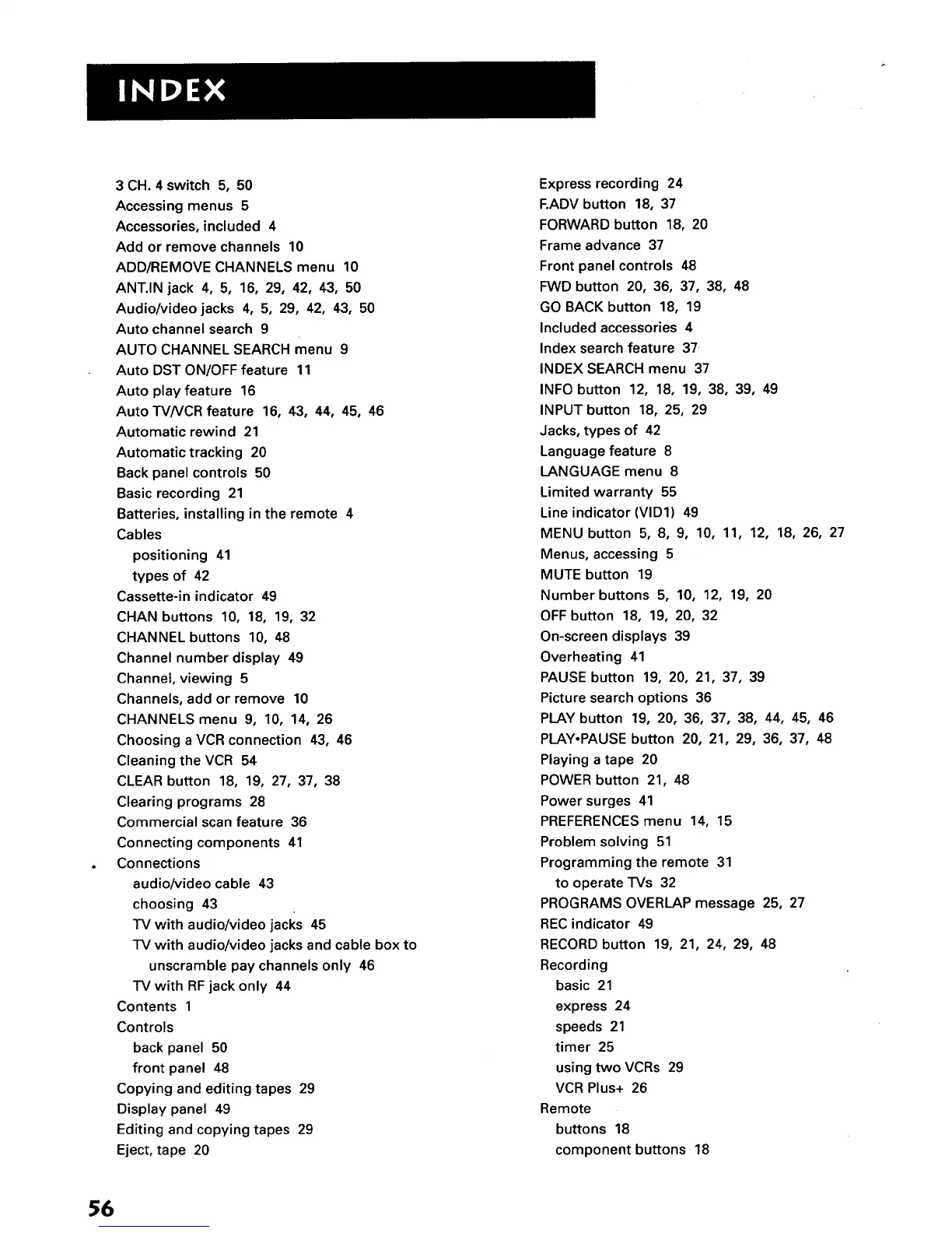 PLAY°PAUSE button 20, 21, 29, 36, 37, 48