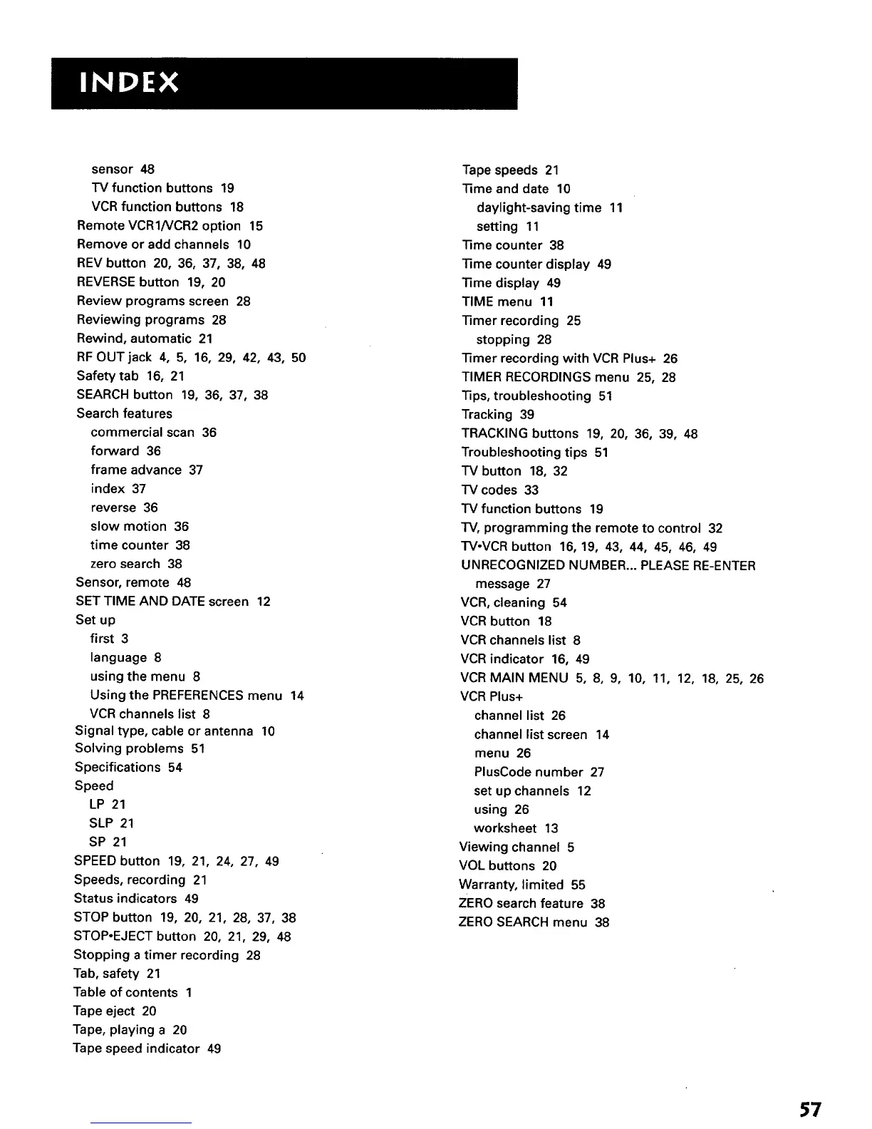 TV,VCR button 16, 19, 43, 44, 45, 46, 49