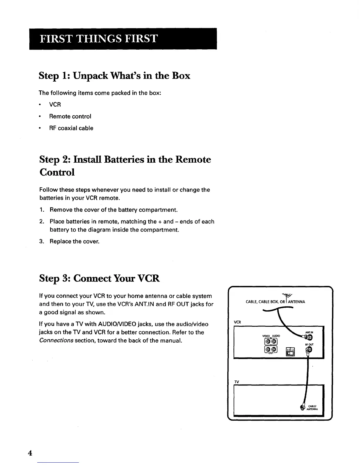 and then to your TV, use the VCR's ANT.IN and RF OUT jacks for