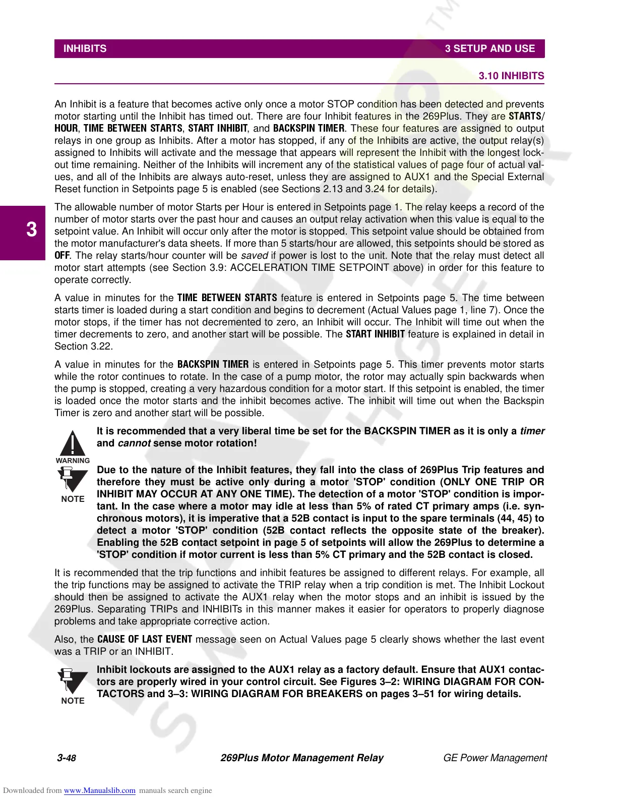 motor starting until the Inhibit has timed out. There are four Inhibit features in the 269Plus. They are