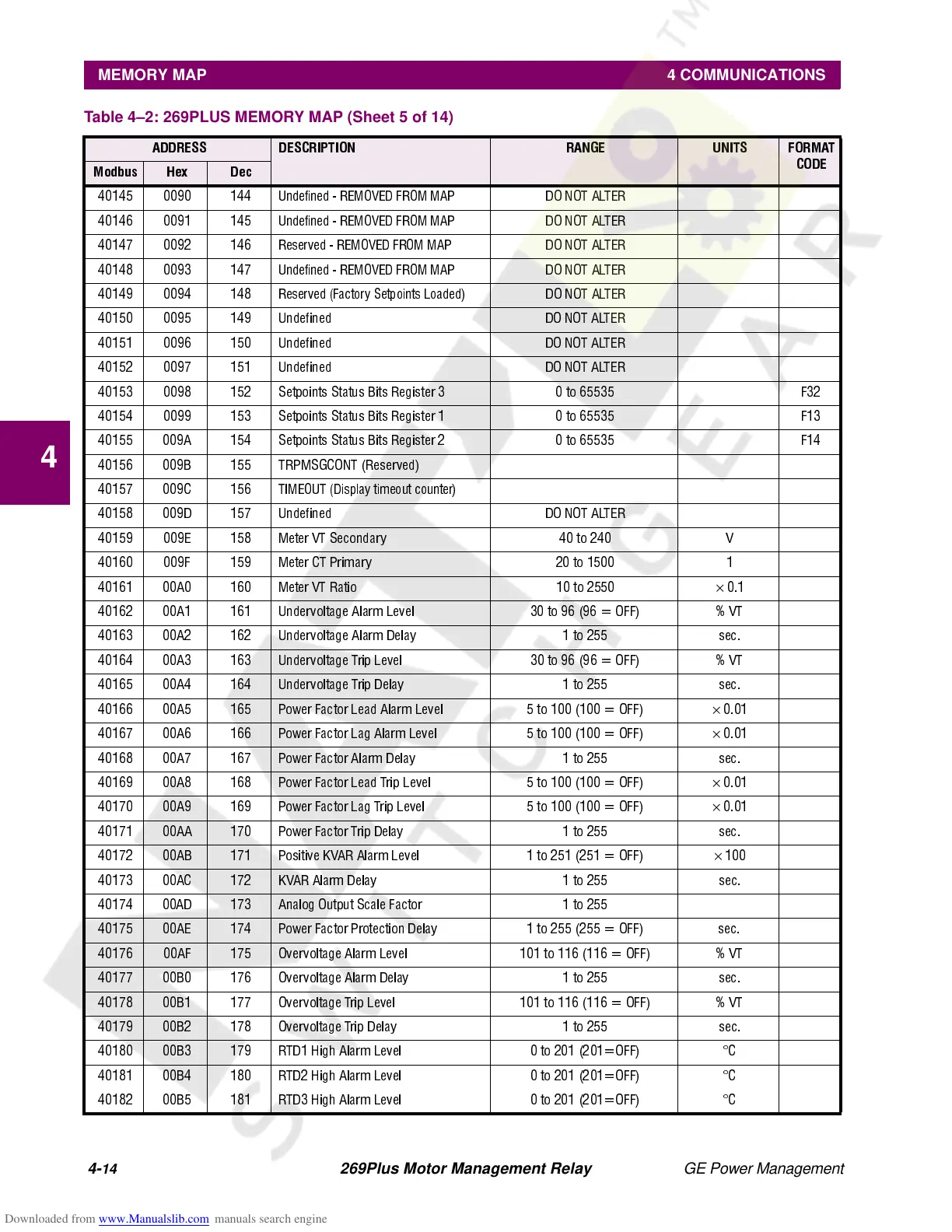 40166 00A5 165 Power Factor Lead Alarm Level 5 to 100 (100 = OFF)