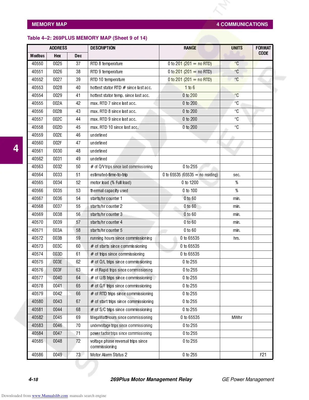 40586 0049 73 Motor Alarm Status 2 0 to 255 F21