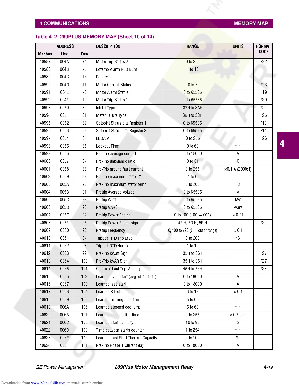 40587 004A 74 Motor Trip Status 2 0 to 255 F22