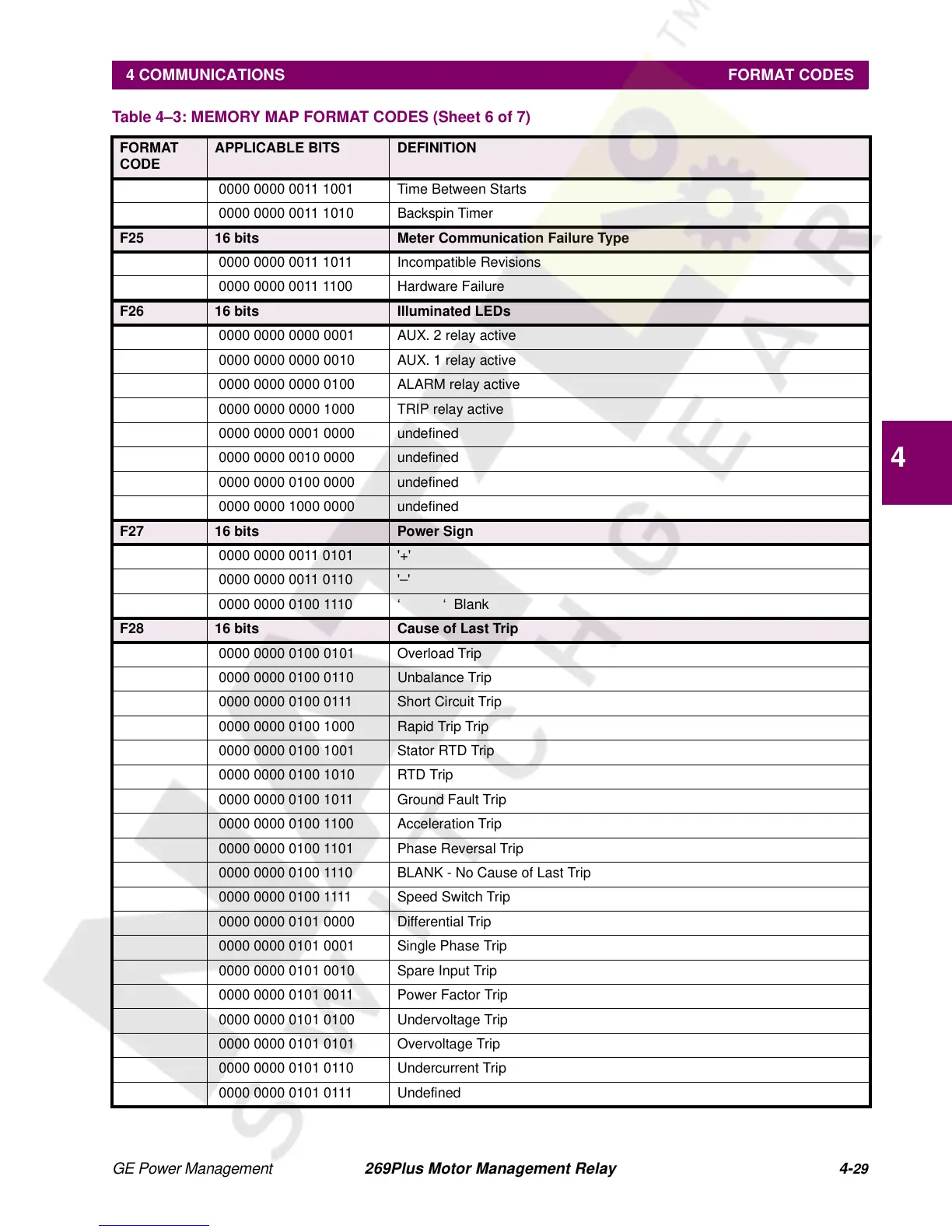 4 COMMUNICATIONS FORMAT CODES