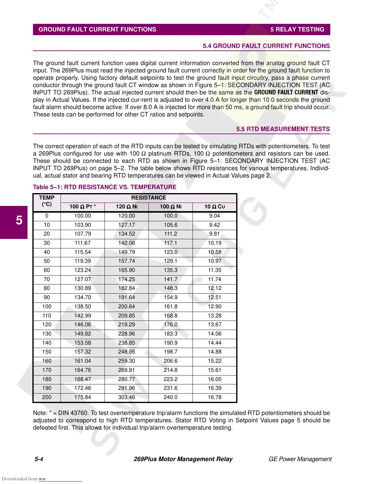 Table 5–1: RTD RESISTANCE VS. TEMPERATURE