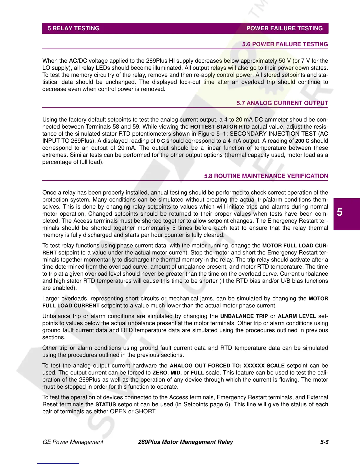 tance of the simulated stator RTD potentiometers shown in Figure 5–1: SECONDARY INJECTION TEST (AC