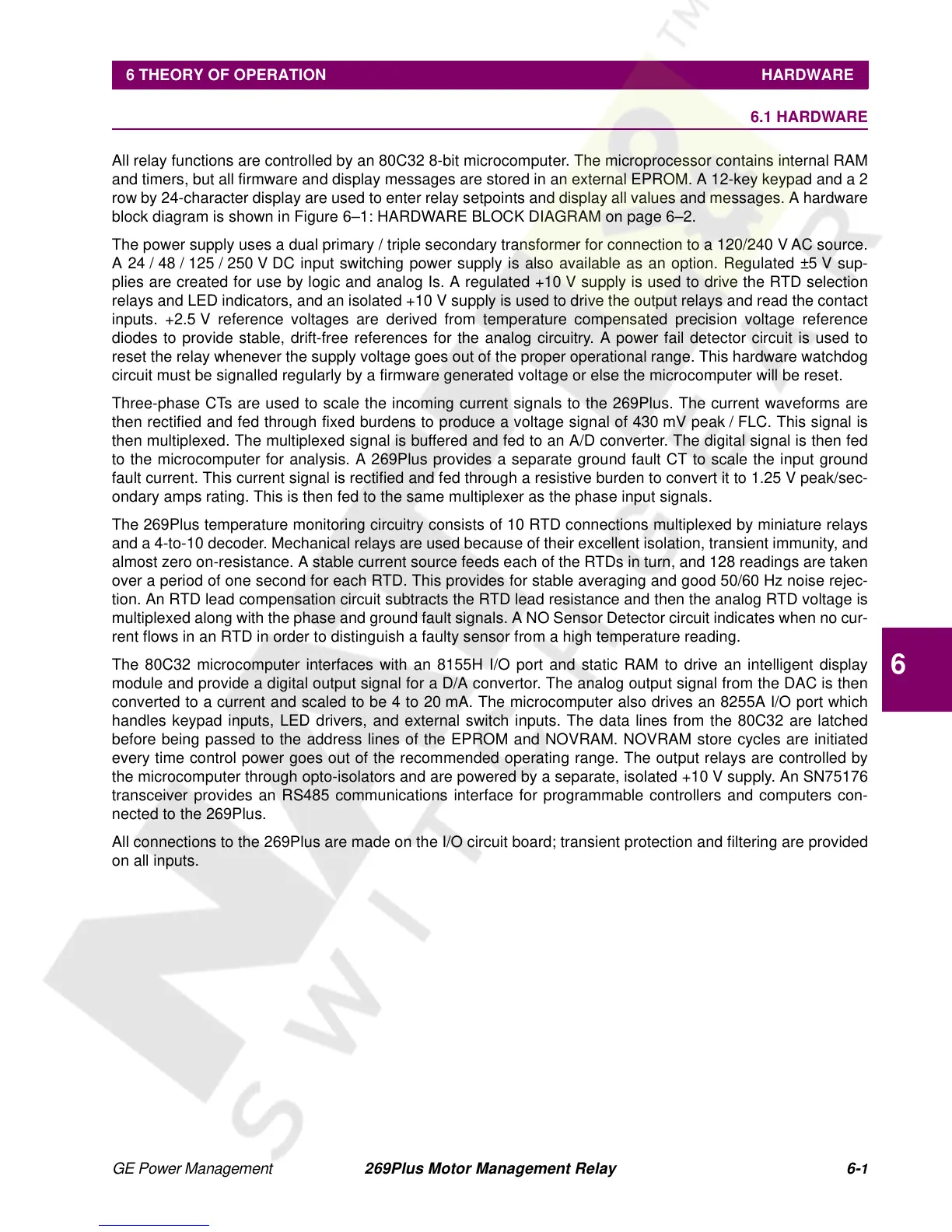 269 MOTOR MANAGEMENT RELAY 6 THEORY OF OPERATION 6.1 HARDWARE