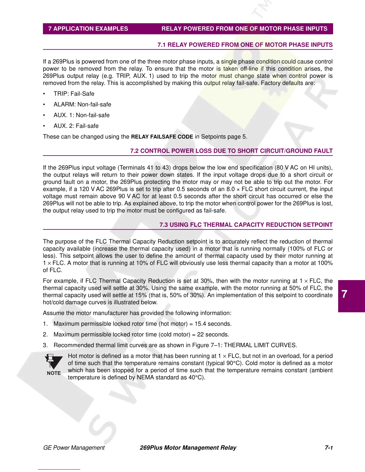 7.3 USING FLC THERMAL CAPACITY REDUCTION SETPOINT