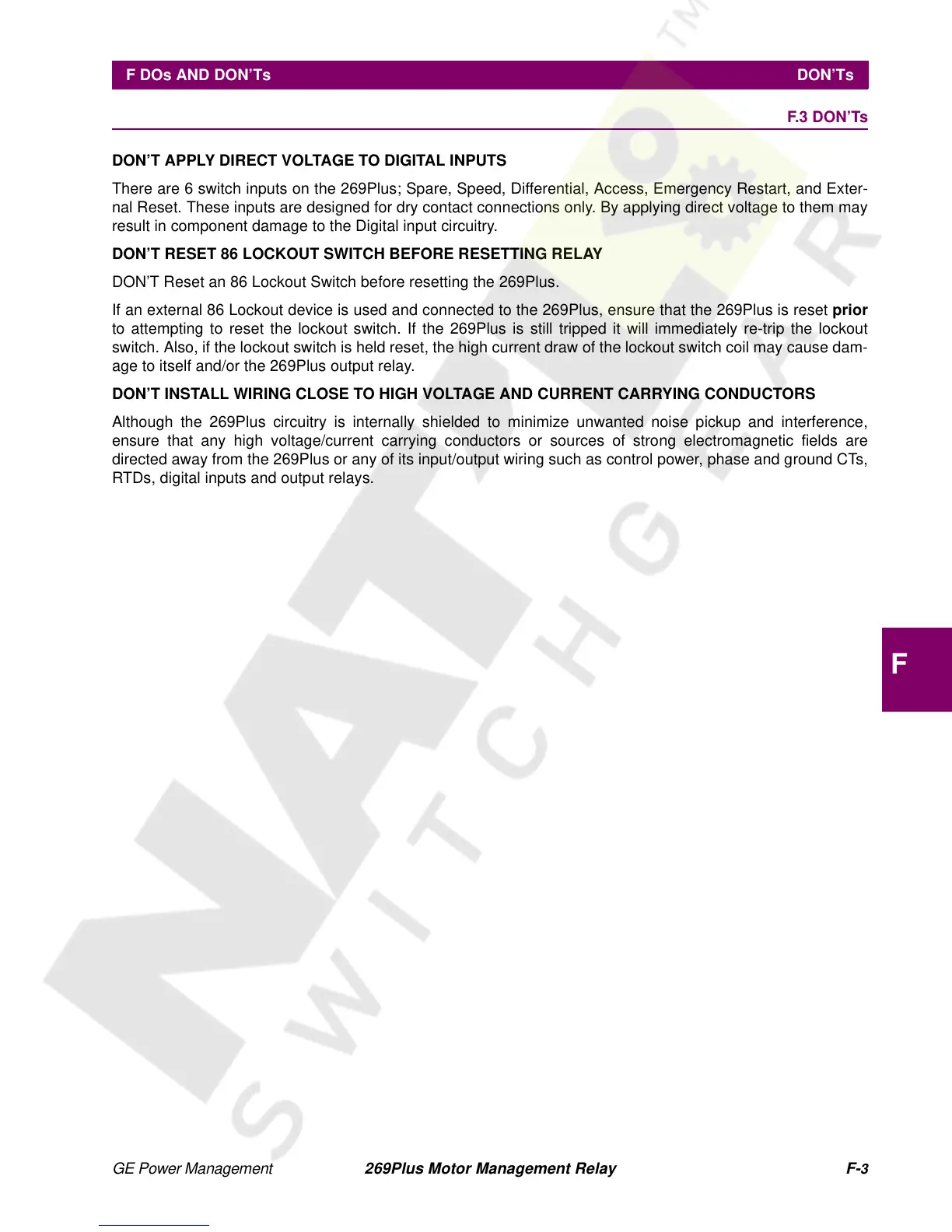 F.3 DON’Ts