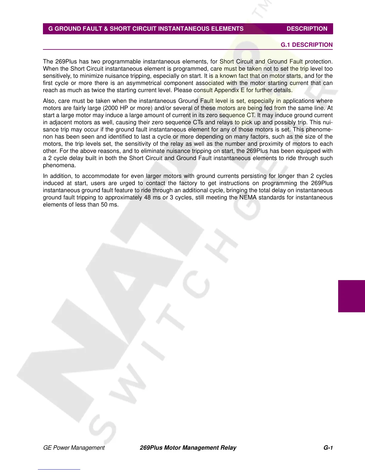 G GROUND FAULT & SHORT CIRCUIT INSTANTANEOUS ELEMENTS DESCRIPTION