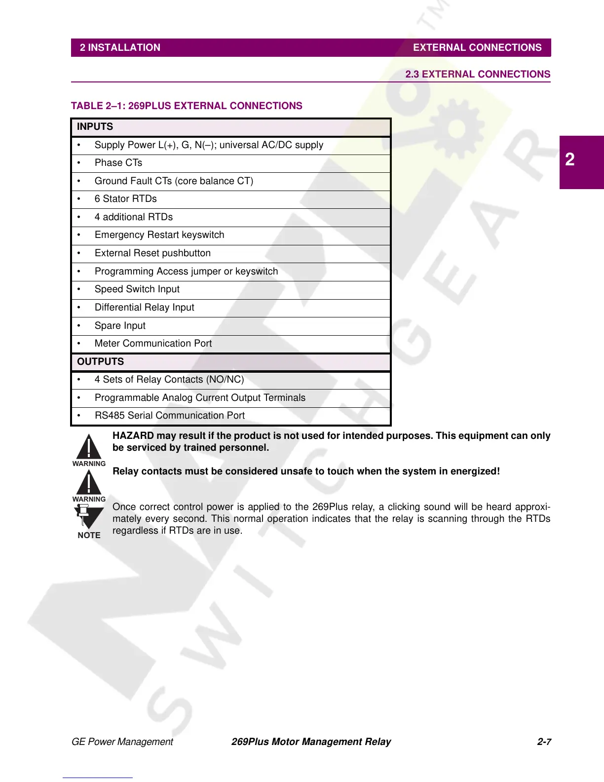 TABLE 2–1: 269PLUS EXTERNAL CONNECTIONS