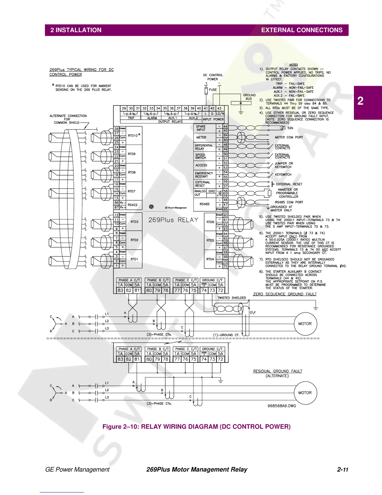 Figure 2–10: RELAY WIRING DIAGRAM (DC CONTROL POWER)