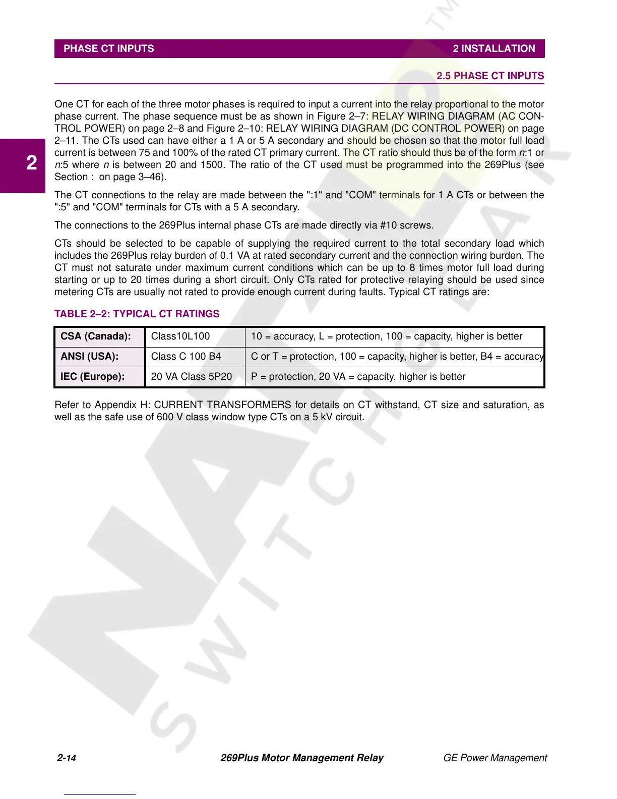 2–11. The CTs used can have either a 1 A or 5 A secondary and should be chosen so that the motor full load