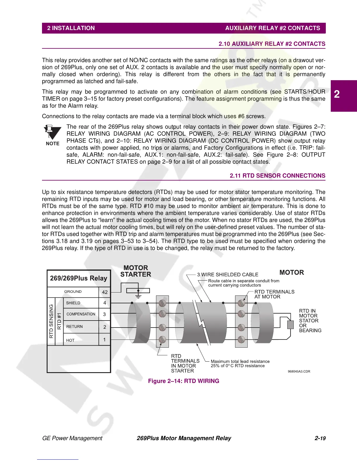 269Plus relay. If the type of RTD in use is to be changed, the relay must be returned to the factory.