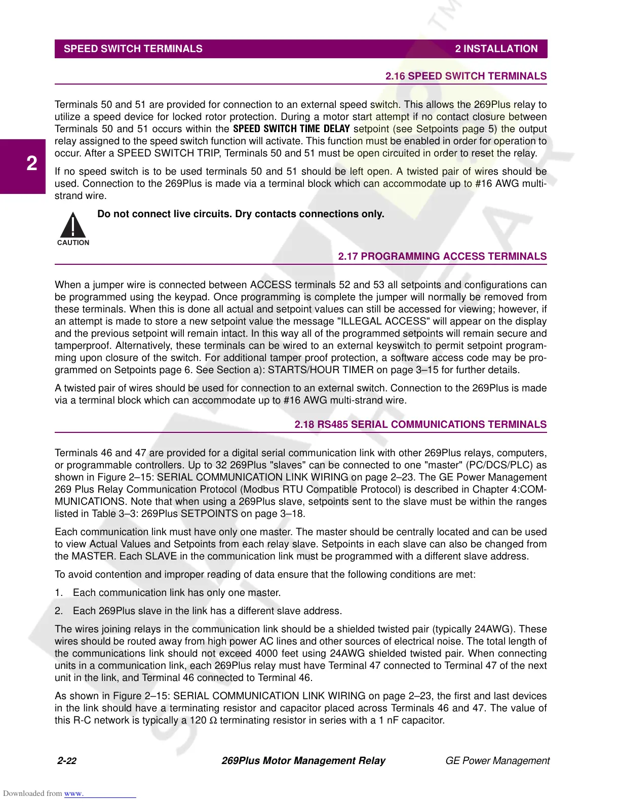 shown in Figure 2ā15: SERIAL COMMUNICATION LINK WIRING on page 2ā23. The GE Power Management