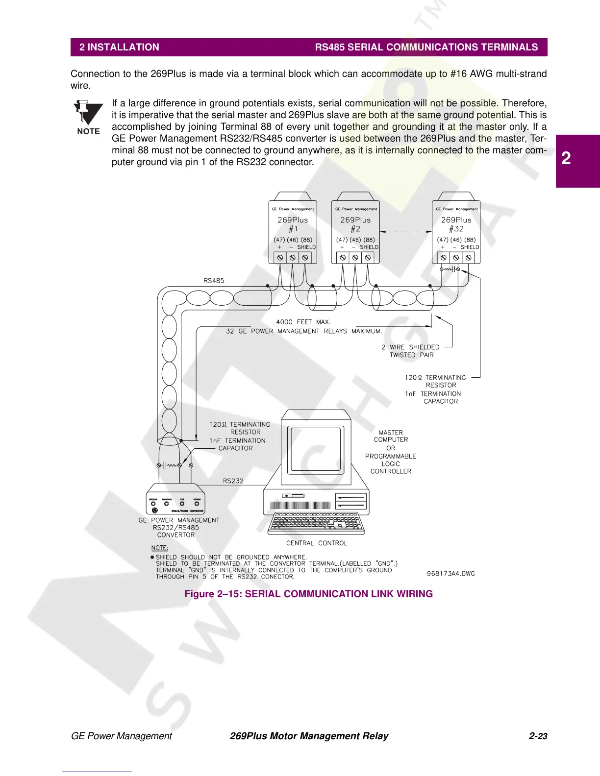 2 INSTALLATION RS485 SERIAL COMMUNICATIONS TERMINALS