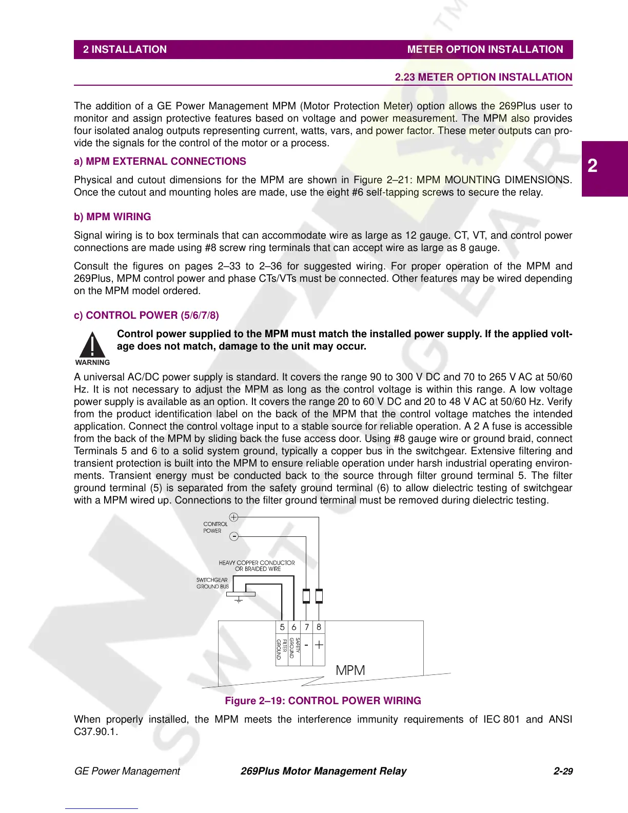 The addition of a GE Power Management MPM (Motor Protection Meter) option allows the 269Plus user to