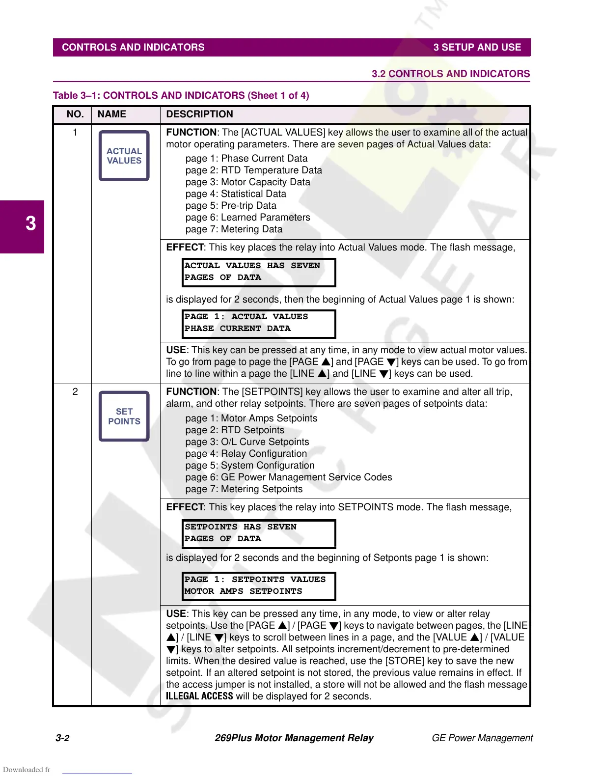 1 FUNCTION: The [ACTUAL VALUES] key allows the user to examine all of the actual