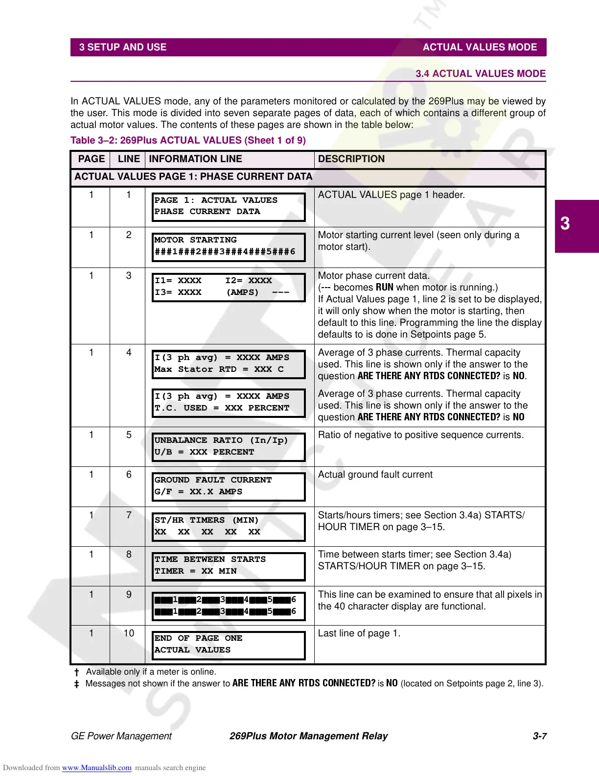 Table 3–2: 269Plus ACTUAL VALUES (Sheet 1 of 9)