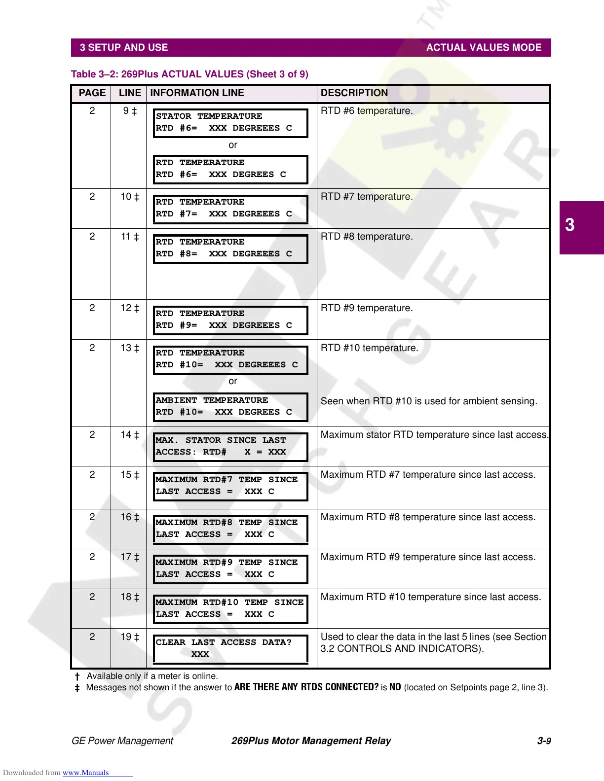 Table 3–2: 269Plus ACTUAL VALUES (Sheet 3 of 9)