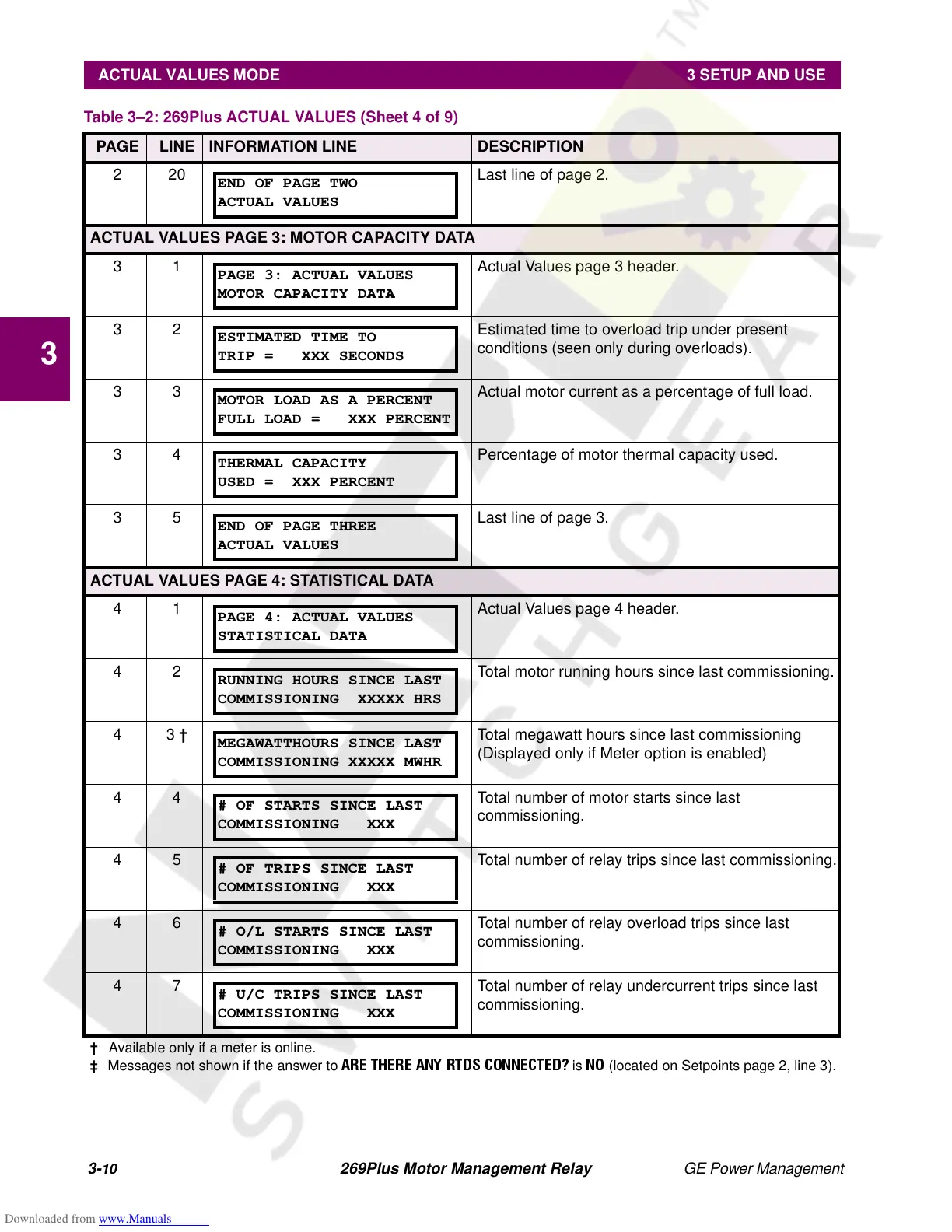 Table 3–2: 269Plus ACTUAL VALUES (Sheet 4 of 9)