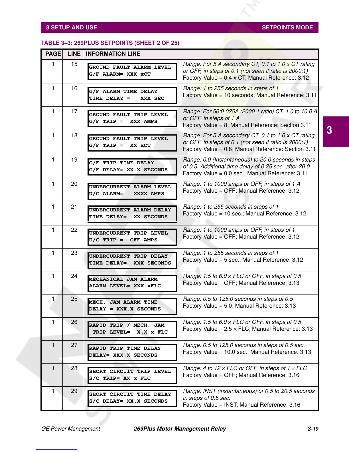 TABLE 3–3: 269PLUS SETPOINTS (SHEET 2 OF 25)