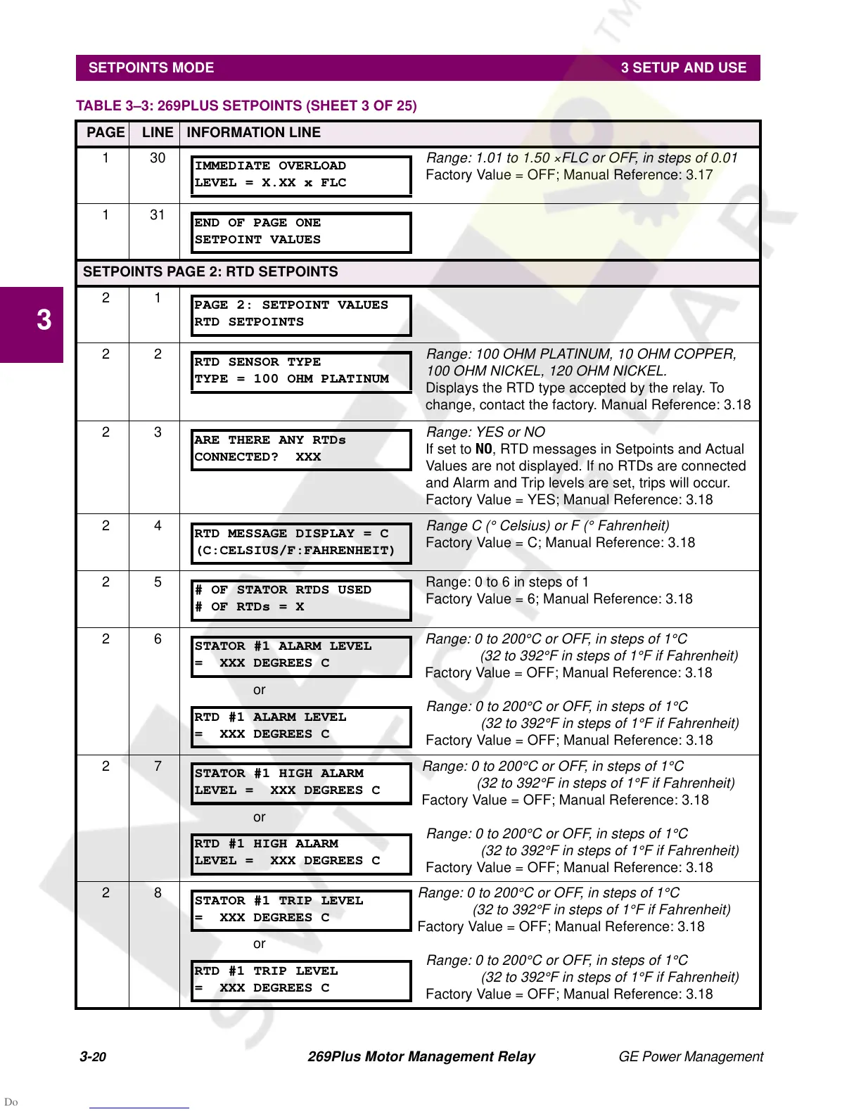 TABLE 3–3: 269PLUS SETPOINTS (SHEET 3 OF 25)