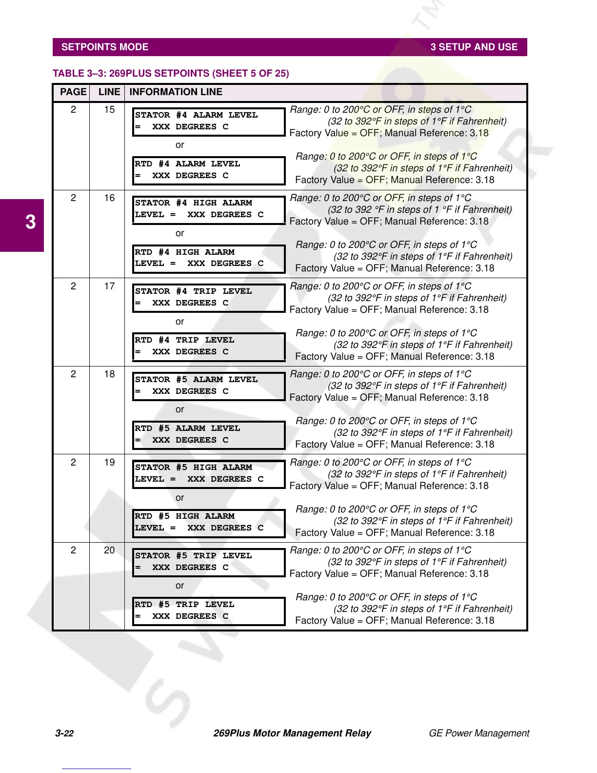 TABLE 3–3: 269PLUS SETPOINTS (SHEET 5 OF 25)