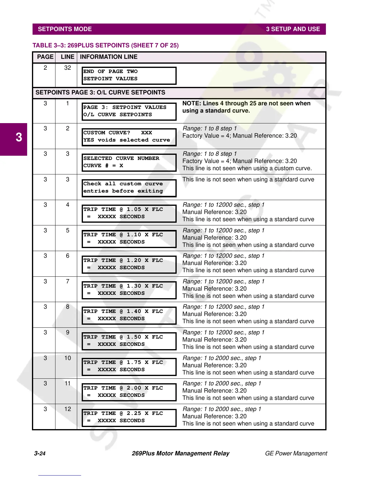 TABLE 3–3: 269PLUS SETPOINTS (SHEET 7 OF 25)