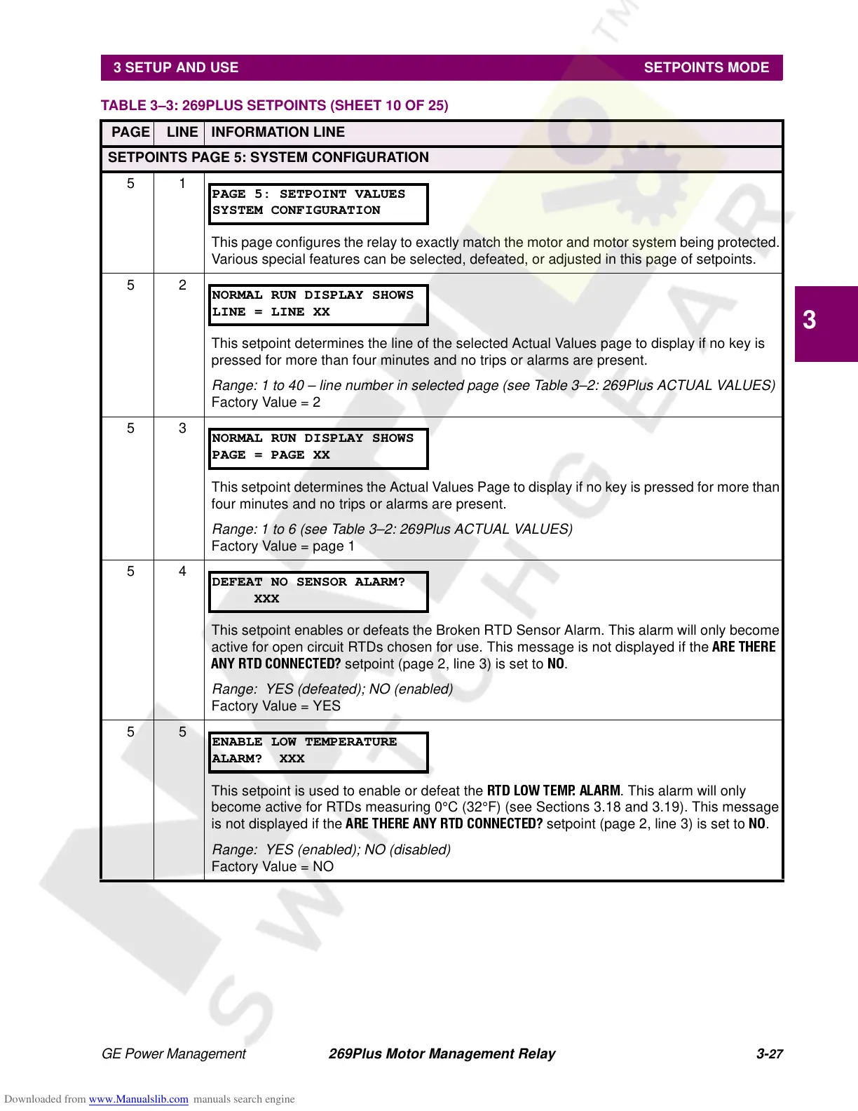 TABLE 3–3: 269PLUS SETPOINTS (SHEET 10 OF 25)