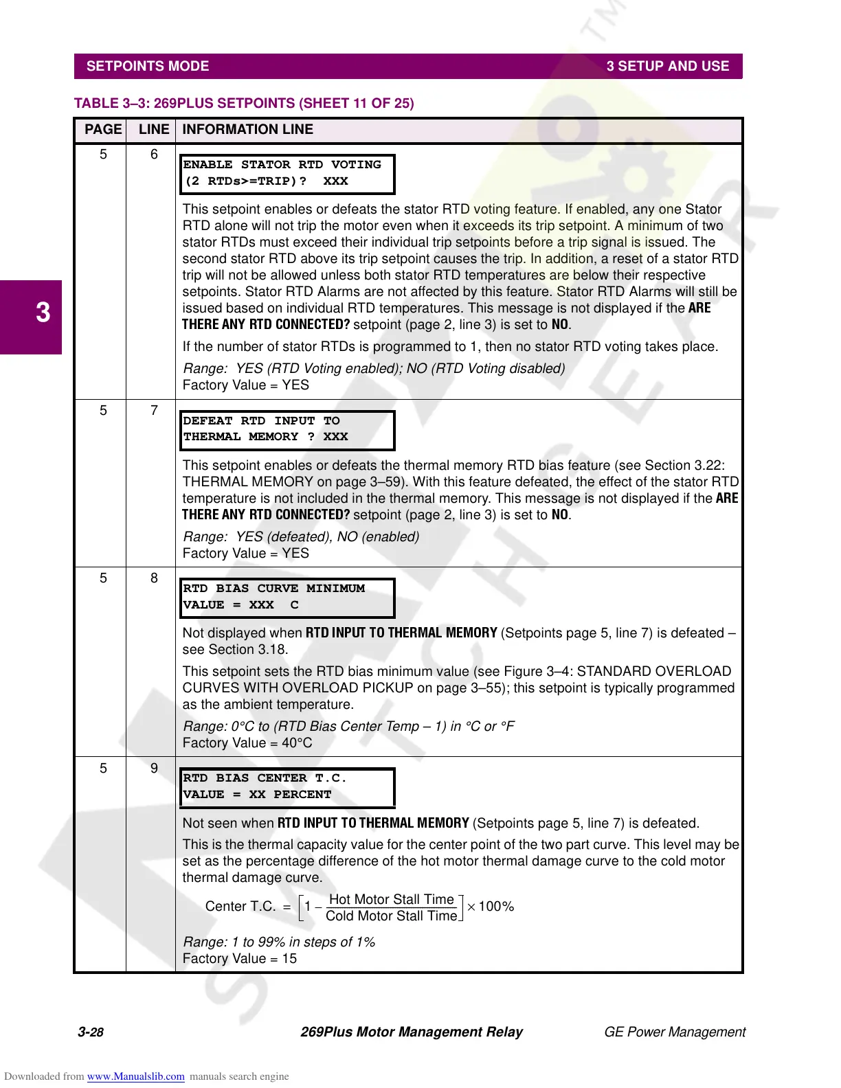 TABLE 3–3: 269PLUS SETPOINTS (SHEET 11 OF 25)